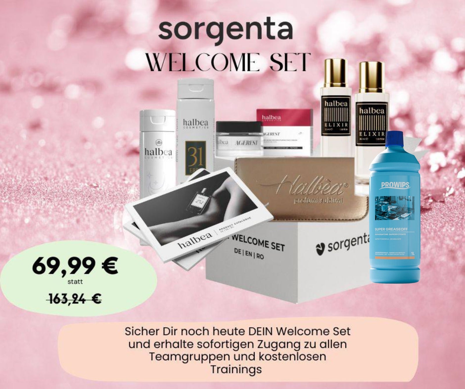 Hier nur ein Beispiel, das ist aber keine Pflicht! Welcome Set = 50pv = ca.70€ um als Berater durchzustarten. Tolle Sorgenta Bestseller + Pocket Proben-Duftkoffer